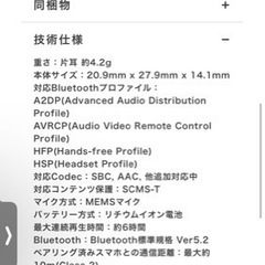重さ:片耳 約4.2g 本体サイズ:20.9mm x 27.9mm x 14.1mm 対応Bluetoothプロファイル: A2DP(Advanced Audio Distribution Profile) AVRCP(Audio Video Remote Control Profile) HFP(Hands-free Profile) HSP(Headset Profile) 対応Codec:SBC, AAC, 他追加対応中 対応コンテンツ保護:SCMS-T マイク方式:MEMSマイク バッテリー方式:リチウムイオン電池 最大連続再生時間:約6時間 Bluetooth:Bluetooth標準規格 Ver5.2 ペアリング済みスマホとの通信距離:最大約10m(Class 2) 防水性能:IPX5(※充電ケースは防水非対応) 同梱物 USB Type-Cケーブル、取扱説明書 使用頻度 一回のみ お渡しする際はきちんと除菌してからお渡しします。 保証書箱内に入ってます。 ワイヤレスイヤホン イヤーカフ
